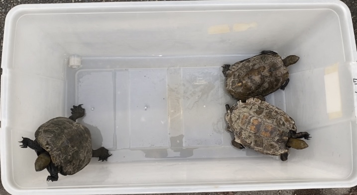 数カ所のポイントごとに罠を仕掛け、かかったカメたちを記録調査。今回、罠にかかった在来種のカメたちは、クサガメ・ニホンイシガメ・スッポンの3種類。