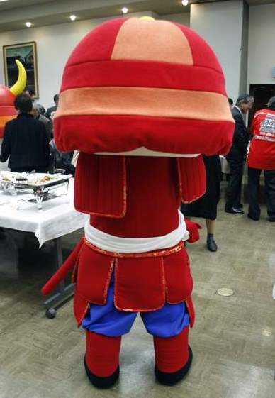 彦根鉄砲隊の赤備えの甲冑をモチーフにデザイン。名前は一般公募で決まりました。