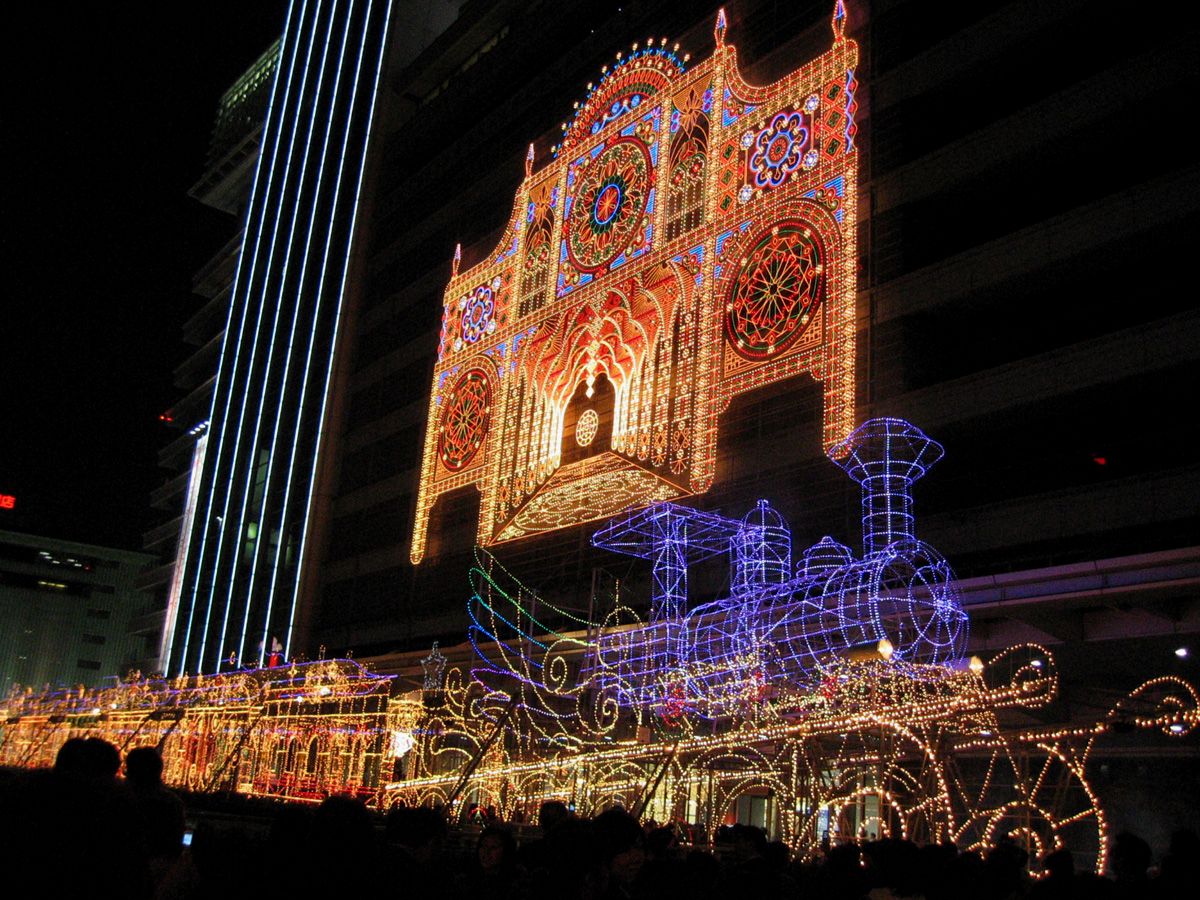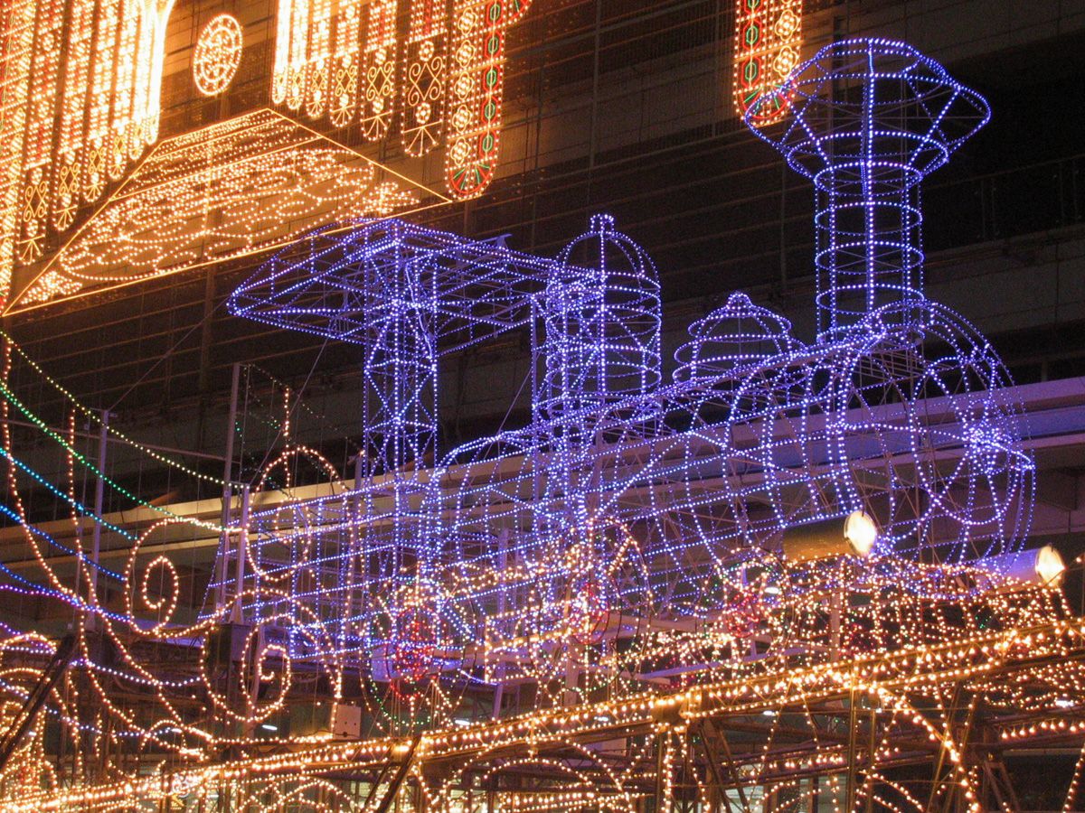 よくわかりませんが、機関車に「羽根」が付属し、横の公園にも少し電飾の飾りつけが置かれ