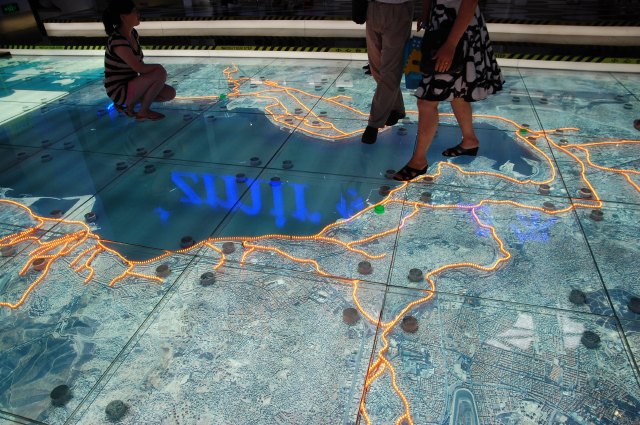 イズミール案例では、巨大な航空写真を床に設置し、