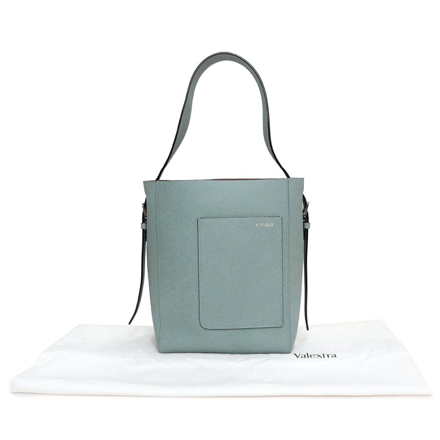 (新品・未使用品)ヴァレクストラ Valextra バケットバッグ スモール 2way ショルダーバッグ ハンドバッグ ソフトカーフ レザー パウダーブルー 青 V5B94