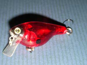 | ティムコ社の「TTクランクシャロー」がベースです。このクランクも数多くのお店でお勧め商品で売られており、使用している方も大変多いと思います。ただ反面スレルのも早いルアーです。今回は透明な個体にクリアーレッドを塗りつけてオリジナルカラーを作成してみました。 | |