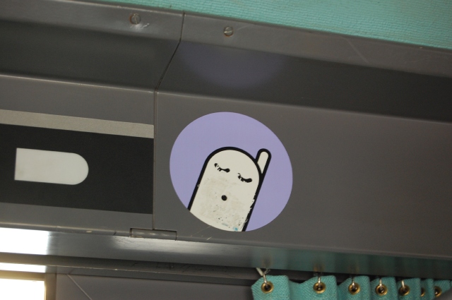 眠っている顔のステッカー(写真左)が貼ってあれば、そこでは使用禁止です。