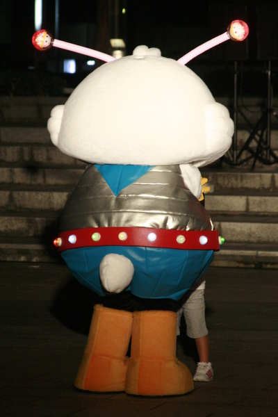 | 市民参加型地方博として大成功を収めた「'89鳥取国際おもちゃ博覧会」のマスコットとして誕生。閉幕後はわらべ館のイベントで活躍中。 今の着ぐるみは耳の先とベルトの周りがLEDで光ります。 |