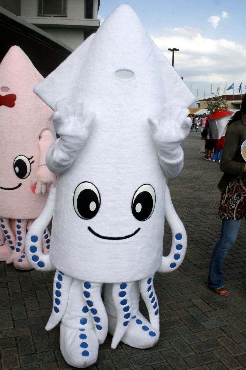 | 呼子イカ祭りのキャラクターとして誕生。2008年にサキちゃんと出会い結婚。 これまでは毎年段ボールで作り直していましたが、2010年7月に発泡ウレタン製の体にリニューアル。祭り以外にも色々なイベントに参加するようになりました。 |