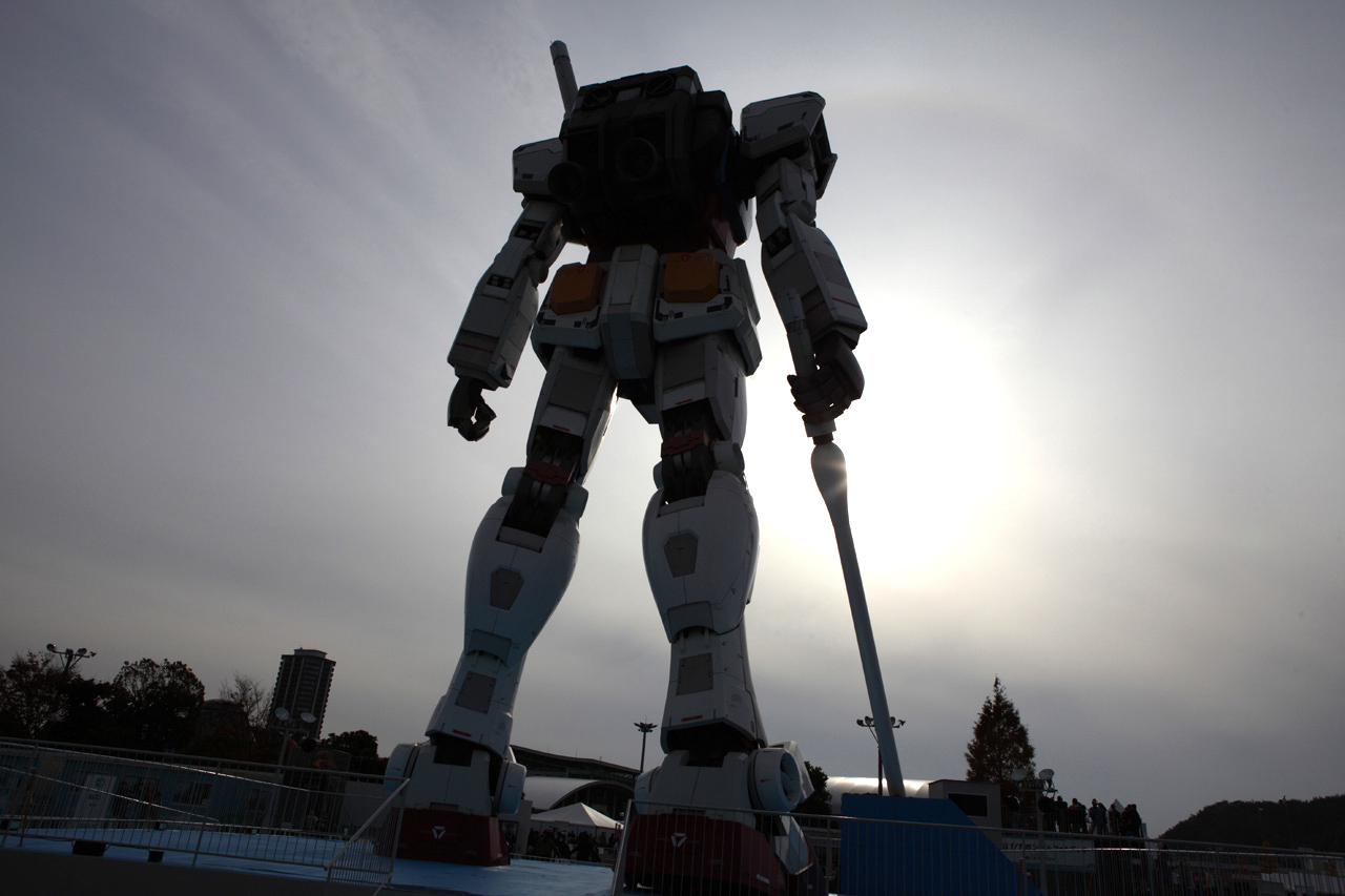 ガンダム大地に立つのイメージと、横のビルの大きさの対比をアクセント