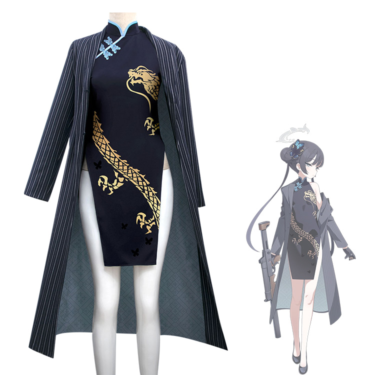 セット内容:チャイナドレス、トレンチコート、手袋、黒ストッキング、髪飾り