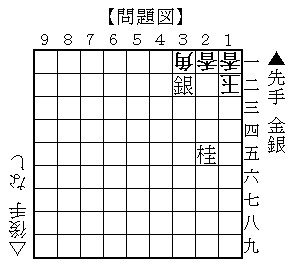 詰め将棋の基本は、金をとどめに使うことが多いのですが、 しかし、今回は・・・、んー、どーでしょう。 f(^^;)あ、言いかけた・・。