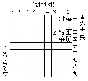 すぐにでも詰みそうな玉ですが、 攻め方を間違えるとスルスルと逃げられてしまいますよー。 s(・`ヘ´・;)ゞ エート 勇気を持って初手を指して下さい。 最終手(3手目)を答えて下さい。