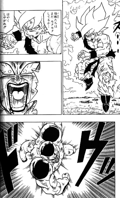 悟空と闘うフリーザ。 宇宙一の強さを持つ超サイヤ人に手も足もでないフリーザは ついにフルパワーを見せた! そこでクイズです。 3コマ目のフリーザのセリフはなんでしょう?