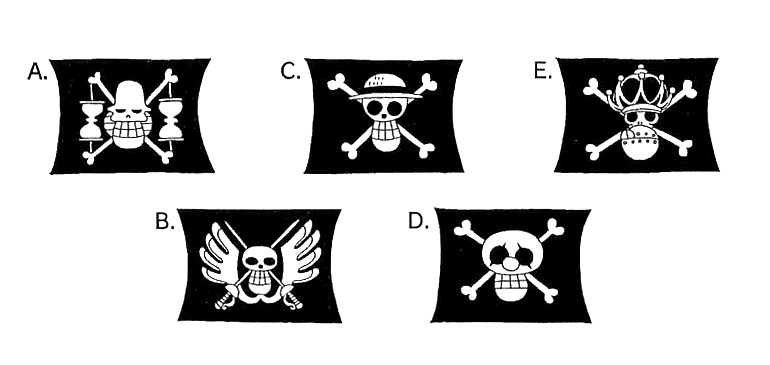 ワンピース ブルー(ONE PIECE BLUE)を参考に麦わら海賊団入団テストを出題します! 最終問題です!あなたは見事 合格ラインを突破できるかな!? 次の海賊団・組織名と、上記画像の旗の組合せが正しいものを選んでください。 1. 麦わらの一味 2. バギー海賊団 3. クリーク海賊団 4. ブリキング海賊団 5. バロックワークス