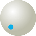 次の配置になってしまった際に点線の経路で1番ボールをポケットしたいと考えています。成功する可能性のもっとも高い撞点(手玉を撞く場所)はどれか?