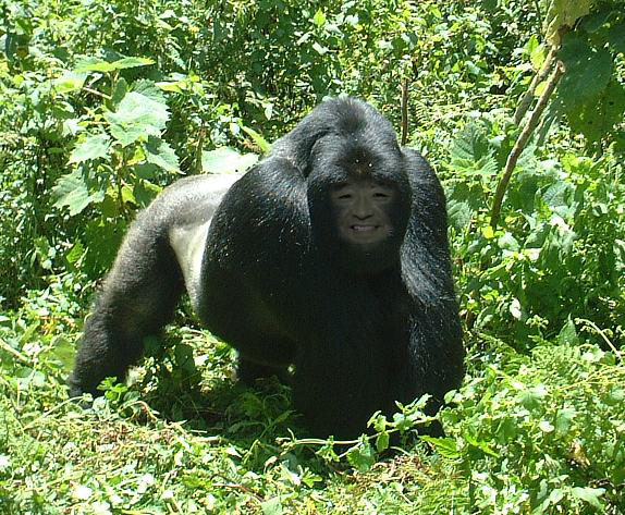 体はゴリラのようだが、顔はまるで人間である。
