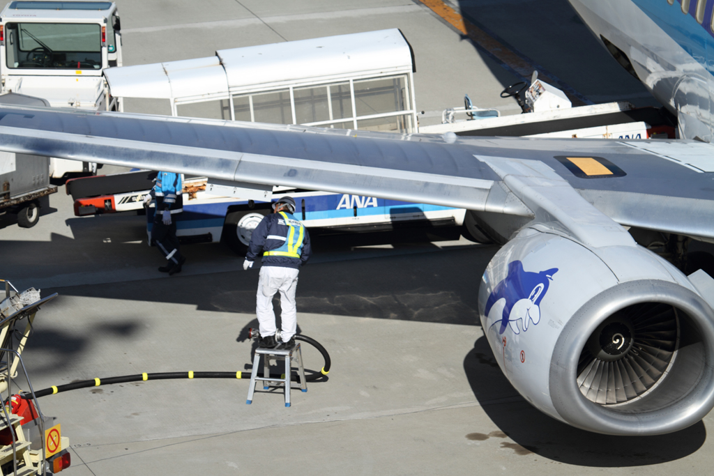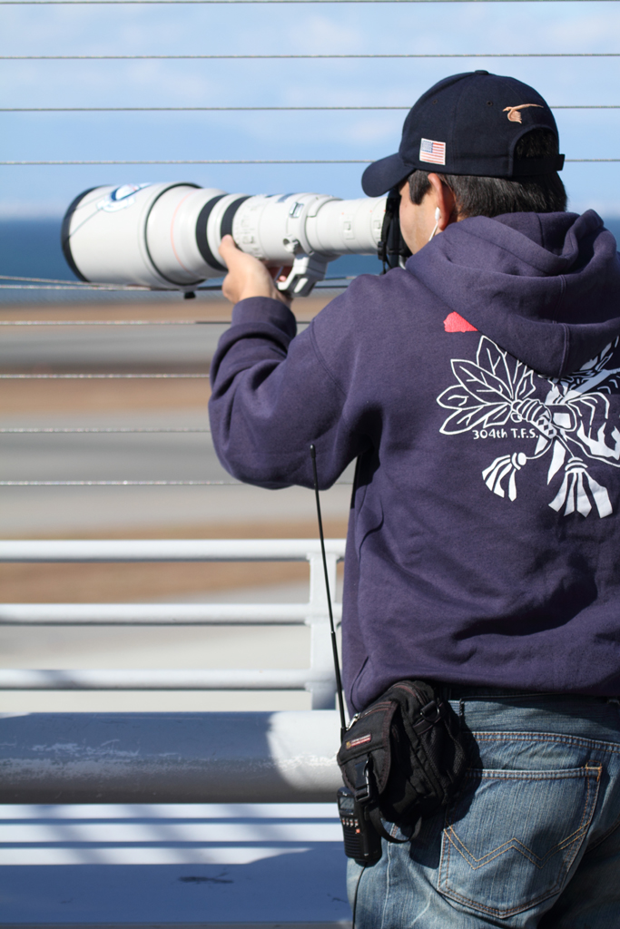 手持ちで撮影できるのでしょうか?腰には無線機もあり、航空無線を聞いているようです