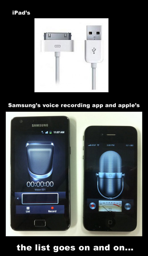 南朝鮮の企業サムスンは、ギャラクシーという米アップル社のiPhoneやiPadの盗作商品を販売し、世界中で訴えられている。最近では、ドイツで裁判所からギャラクシーシリーズの発売禁止命令が下され、オランダでは仮差し止め命令が下されている。