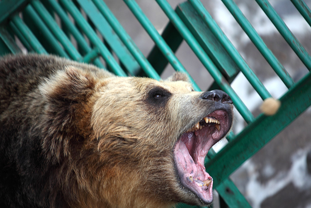 いよいよ生きた羆と御対面です。若い熊の牧場から見学します。若いといっても、十分に大型です。