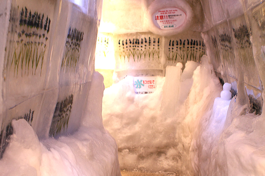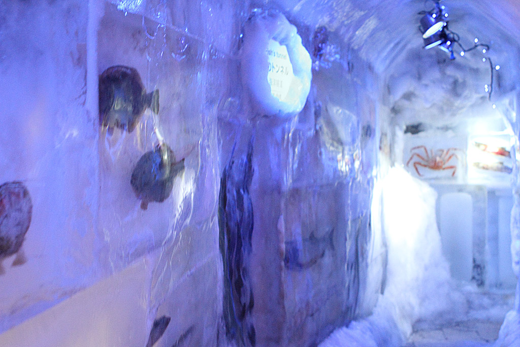 小樽の流氷館です。ここはマイナス20度前後の世界になっています。入場するには、防寒衣を着て入場します。中はコースになっていて、氷の滑り台などがあり、マイナス20度の世界を楽しむことができます。