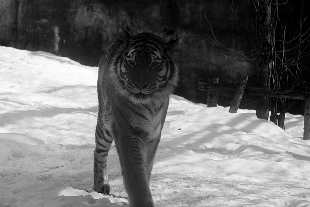 トラをモノクロ処理。カラーより威圧感が増しました。