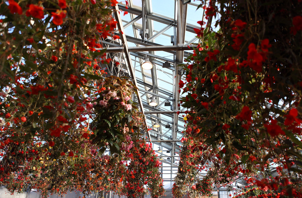 温室内に咲き誇る花々。もはや花の壁になっています。