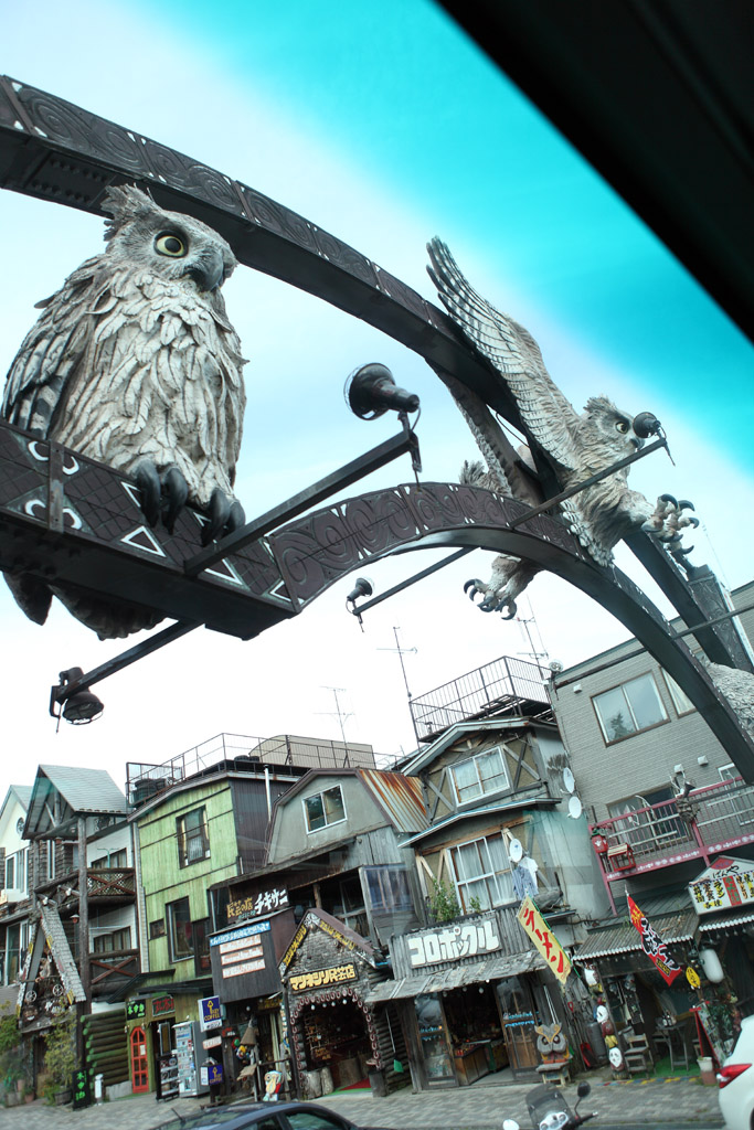 そのよこに「アイヌコタン」という観光客向けの、アイヌ民族村があり、ここが入り口ゲートです。実際に足を運ぶことなく車窓からでしたがとても凝った作りの村でした。次回は足を運んでみるつもりです。