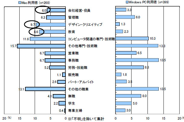 Macユーザーの9.7%、Windowsユーザーの1.3%と、Macユーザーに多い。