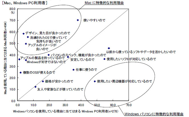 OSを使う理由で、Macユーザーは「使いやすいから」が最多。