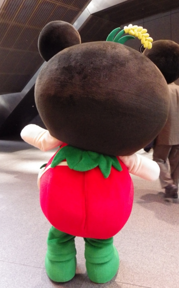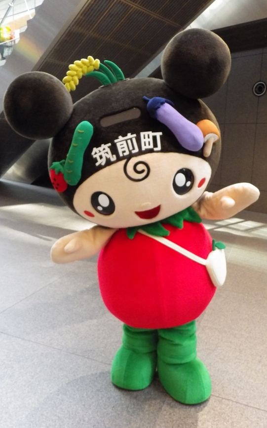 | 2010年10月デザイン決定、筑前町の特産品、筑前クロダマル(黒大豆)を頭に、なす、きゅうり、しいたけ、いちご、米が盛り込まれ、体はトマト、梨のポシェットをつけている。 |