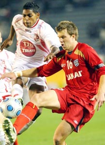 後半に入ってからは 一進一退の攻防が続き38分にアデレードのドッドの勝ち越しのゴール!