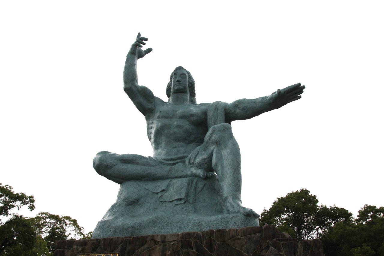 平和の像です。天に向っている手は、投下された原爆を意味し、水平に向いた