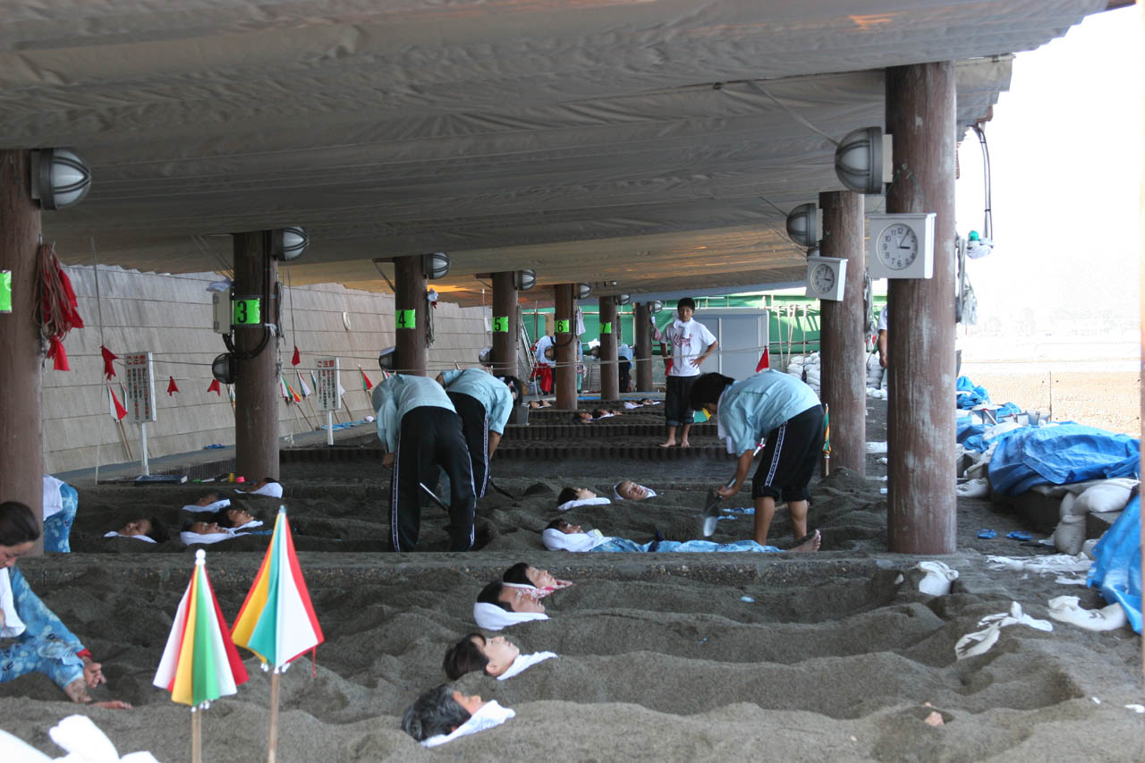 もう一枚の写真は、指宿温泉名物「砂むし温泉」です。人間を砂の