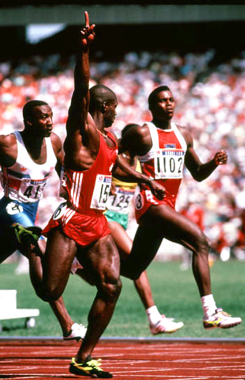ベン・ジョンソン(カナダ)が9秒79の世界新記録をたたき出し、