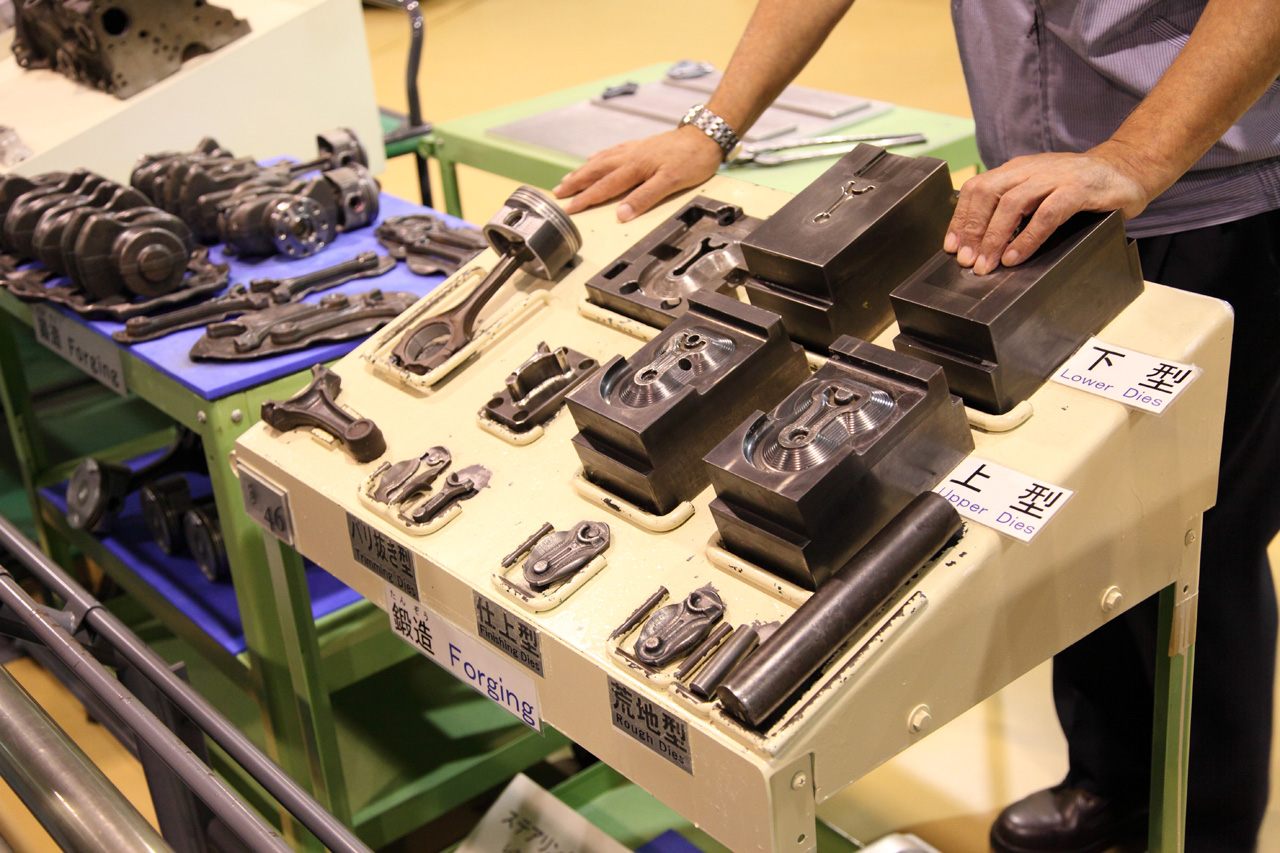 鍛造のデモをしていました。実際に加熱し、作ってくれます。クランクシャフトの