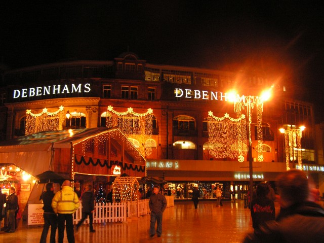 商店街には電飾が灯り、街の中心部の広場では