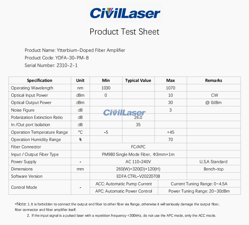 イッテルビウムドープファイバ増幅器(YDFA)は、イッテルビウムドープファイバを半導体レーザーで励起することで利得を生成し、1030〜1100nm帯のレーザー信号を増幅するために使用されます。 PM980