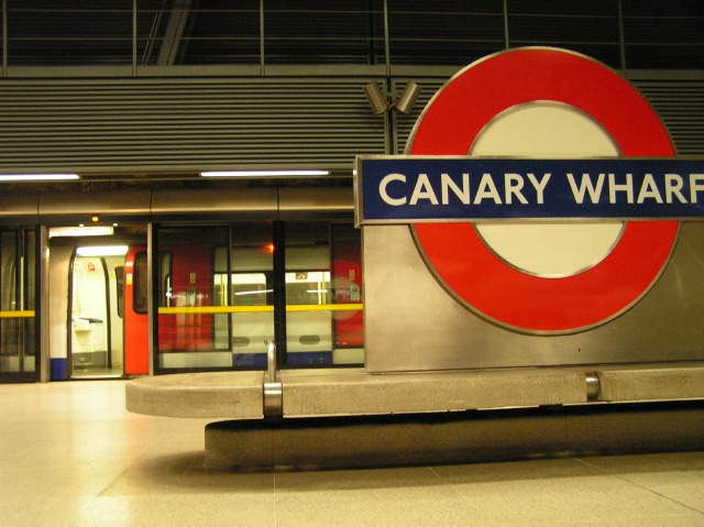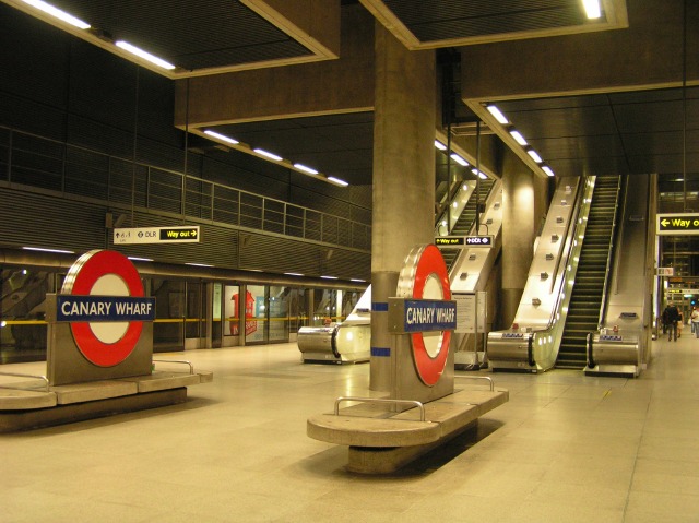 カナリーワーフ(Canary Wharf)駅です(写真)。